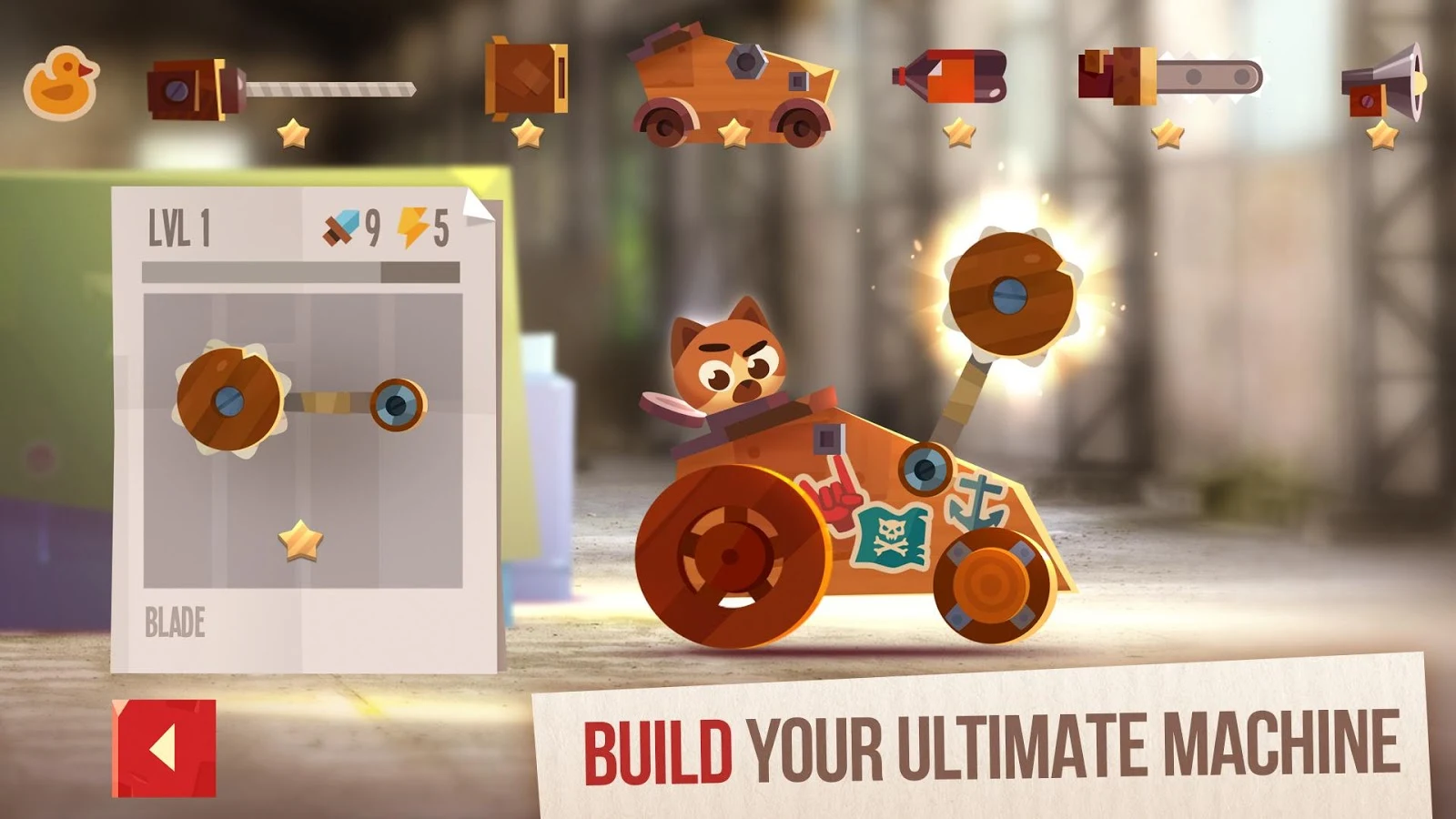 Membangun mesin perang dari bagian dikumpulkan dan melepaskan kekuasaannya melawan pemain lain dalam pertempuran PvP otomatis!